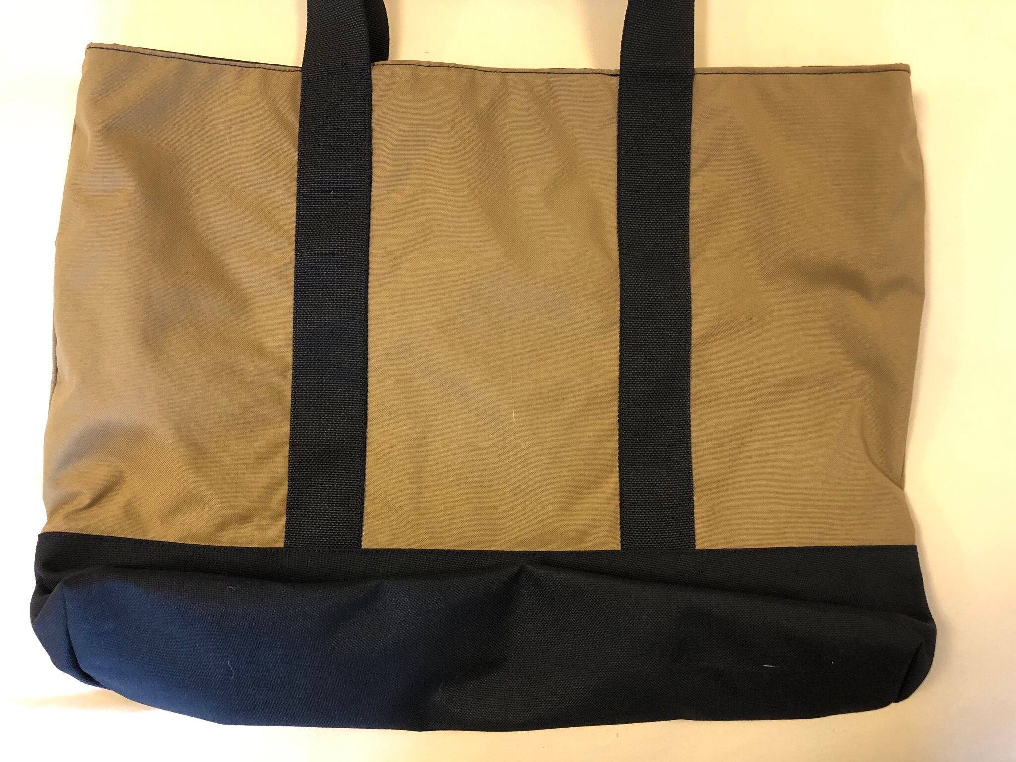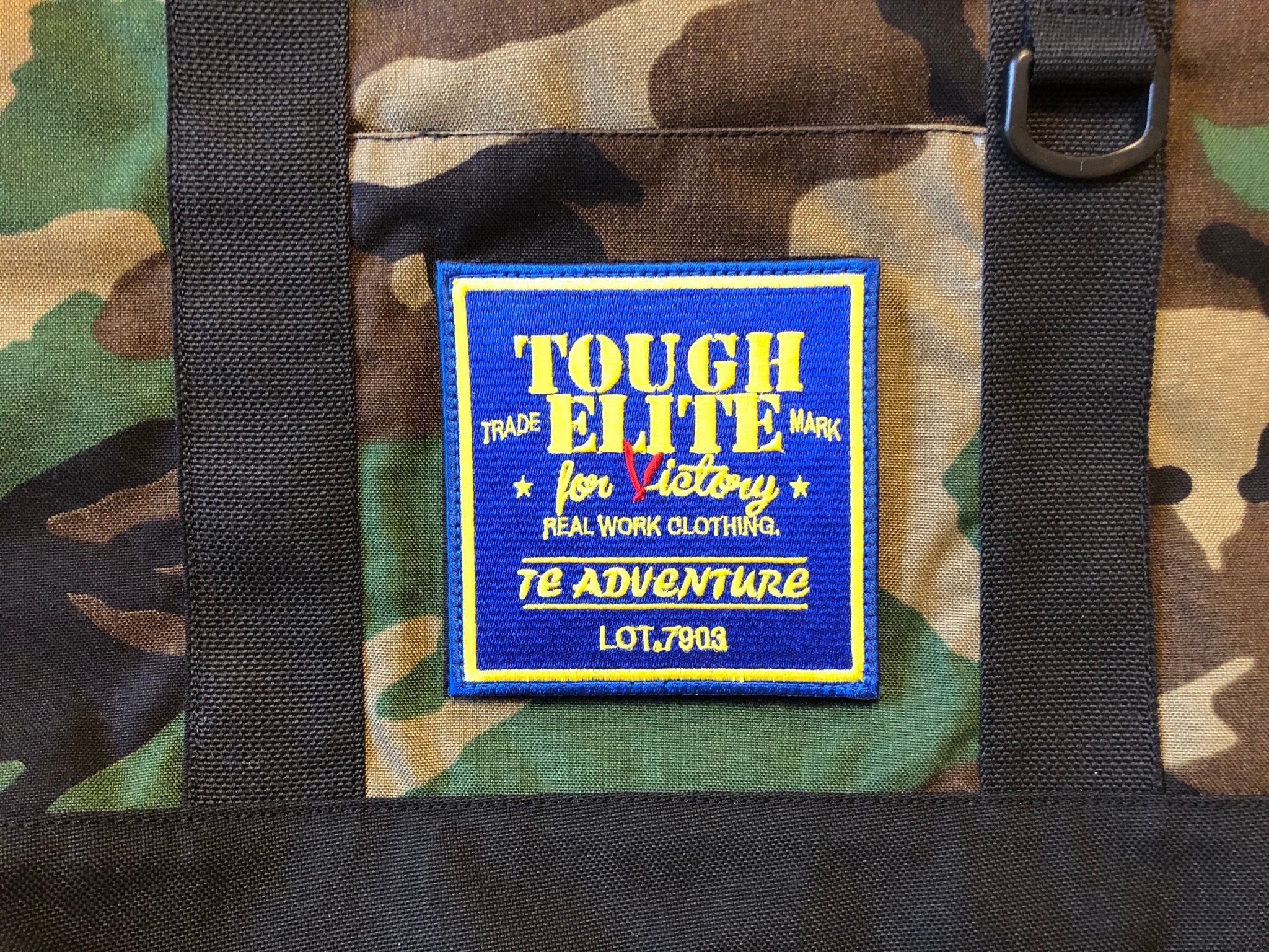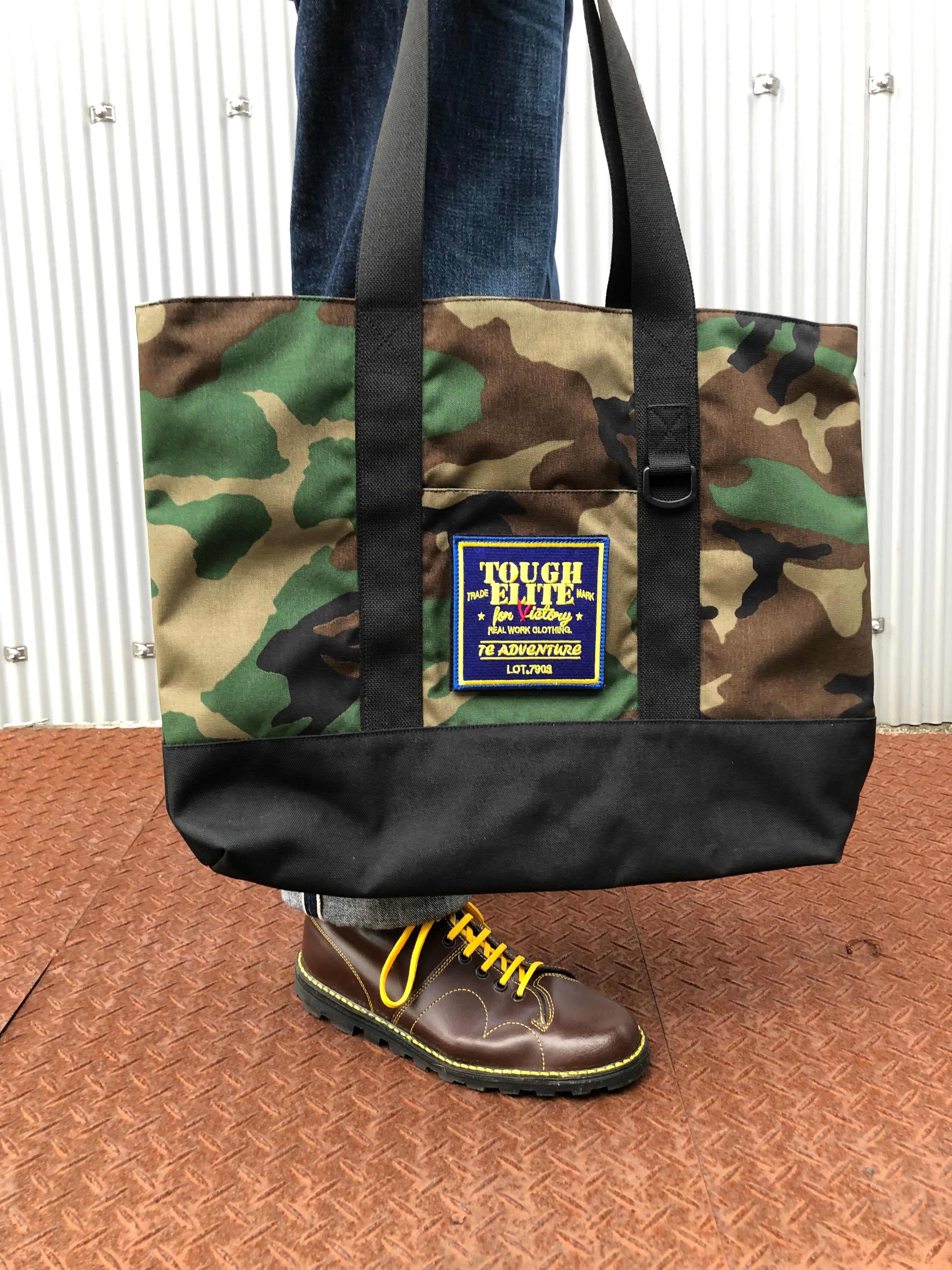 通常ナイロンの7倍の強度があると言われる Milspecコーデュラ500/1000D 生地使用のトートバック完成。カモ、コヨーテ部には500D底部に1000Dのブラックコーデュラナイロンを使用。実に大袈裟でメリメリなバックである。
